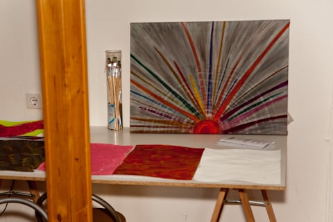 Als Wissensvermittlung kann ich vieles anbieten: Farbherstellung aus Pigmenten, Form- und Farbenlehre, Kunstgeschichte.. Jedoch was mich viel mehr interessiert ist das individuelle, höchst eigene Deiner Kreativität.